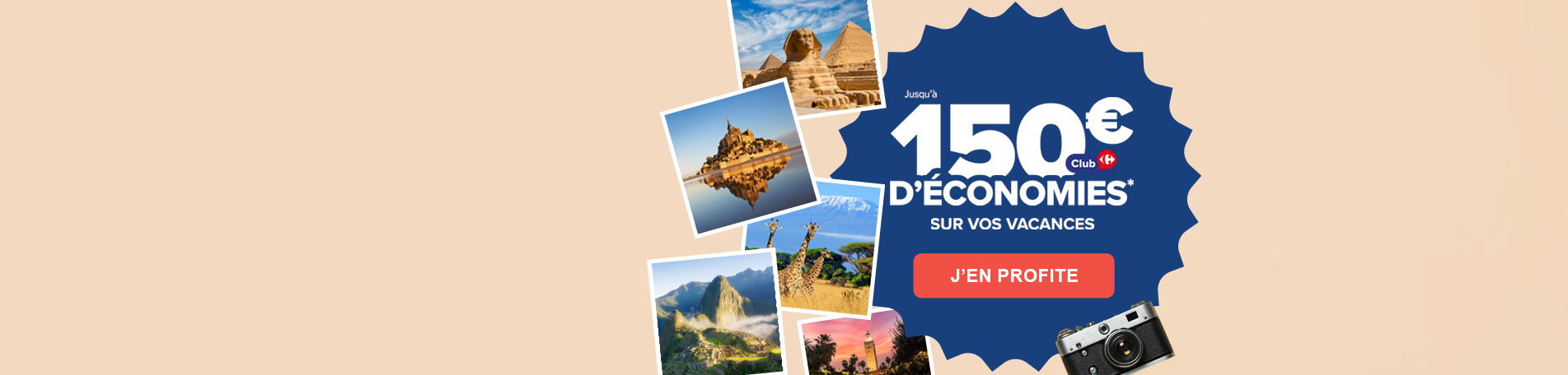 Avec votre carte de fidélité Carrefour, cumulez et dépensez des € en réservant vos voyages.