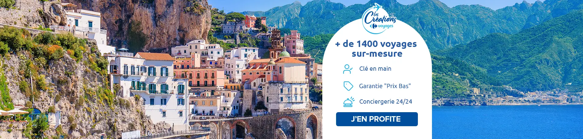 Pour plus de liberté, composez vos vacances sur-mesure avec Carrefour Voyages : choisissez vos vols, votre hôtel ou optez pour le pack Vol+hôtel, notre nouveauté. Vous choisissez votre compagnie aérienne, vos horaires, ainsi que l'hôtel qui vous correspond le plus pour un voyage qui vous ressemble.