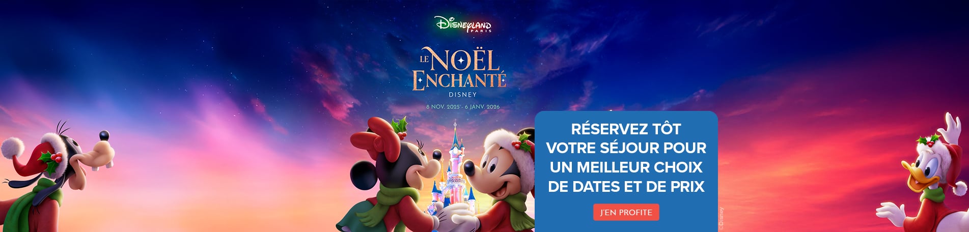 Du 01 octobre au 02 novembre 2025 succombez à l’irrésistible potion que vous ont concocté les Esprits Farceurs, les Méchants Disney et les Hôtes Mystérieux pour le Festival Halloween Disney ! Et du 8 novembre 2025 au 6 janvier 2026, rejoignez l'univers magique Disneyland® avec vos proches pour célébrer tous ensemble Le Noël Enchanté Disney.