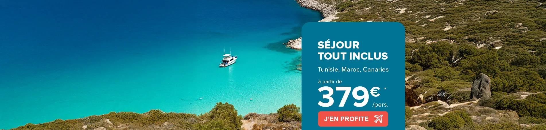 Nous le savons, les séjours tout compris font partie de vos vacances favorites lorsque vous partez à l'étranger, et on vous comprend. Tous les repas sont inclus : vous maîtrisez ainsi votre budget et vous n'avez pas à vous soucier de vos repas sur place. De plus, il y a souvent des animations dans les hôtels qui proposent la formule tout inclus. Si vous partez en vacances en famille, petits et grand trouveront des activités qui leur conviennent. Vous pouvez retrouver ce genre de voyages lors d'un séjour en Tunisie, un séjour en République Dominicaine ou un séjour aux Îles Canaries par exemple.