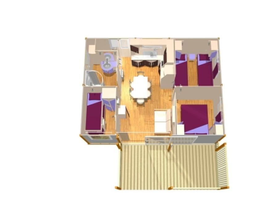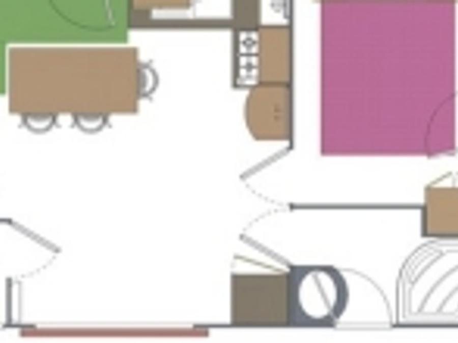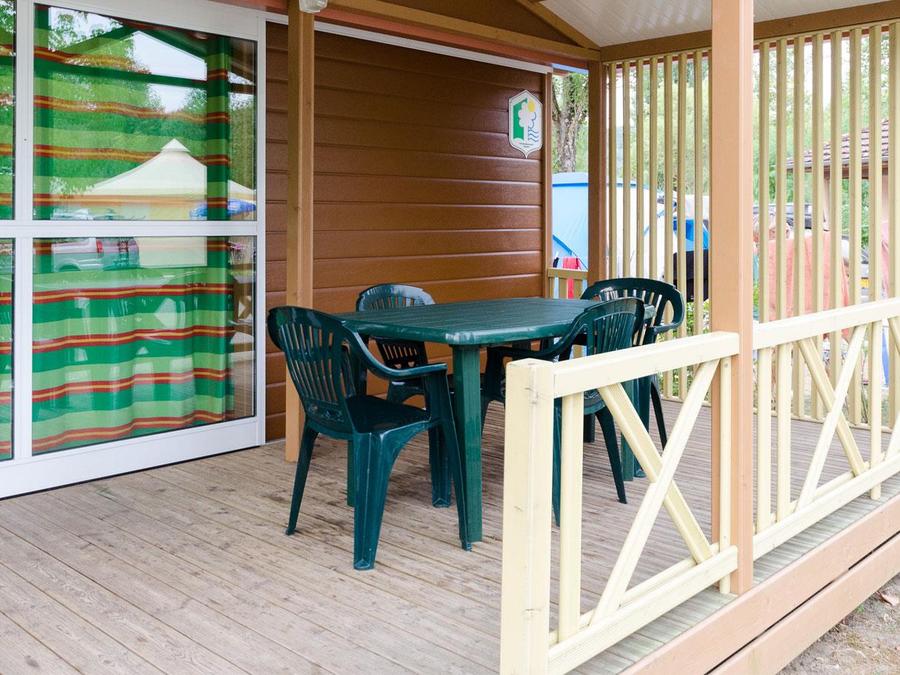 - Chalet spacieux et moderne. Situé au coeur du camping, profitez de sa grande terrasse totalement couverte. Une grande chambre parentale avec accès terrasse. Une isolation renforcée en cas de forte chaleur et de température basse.