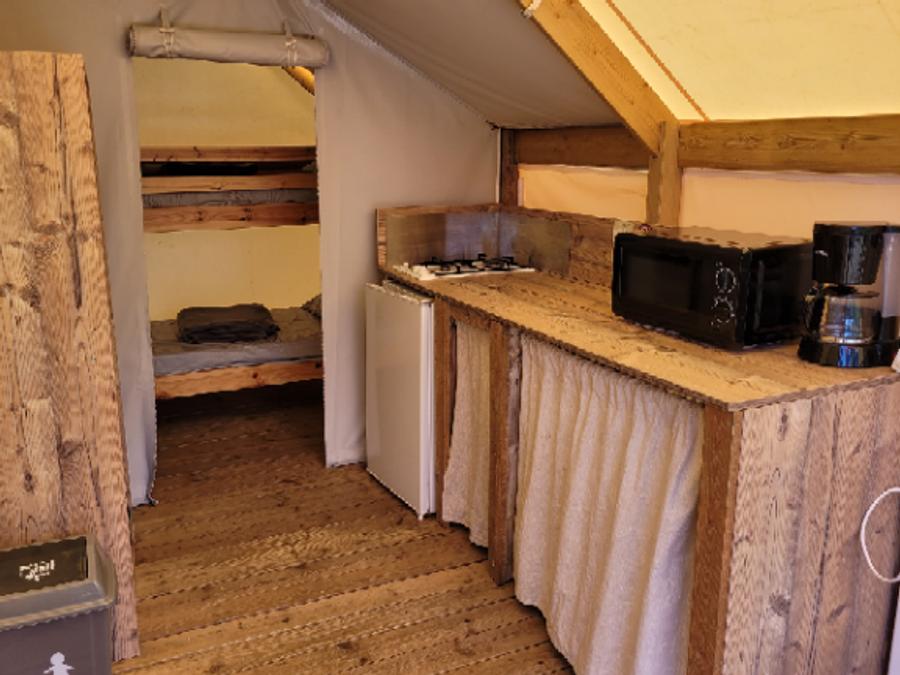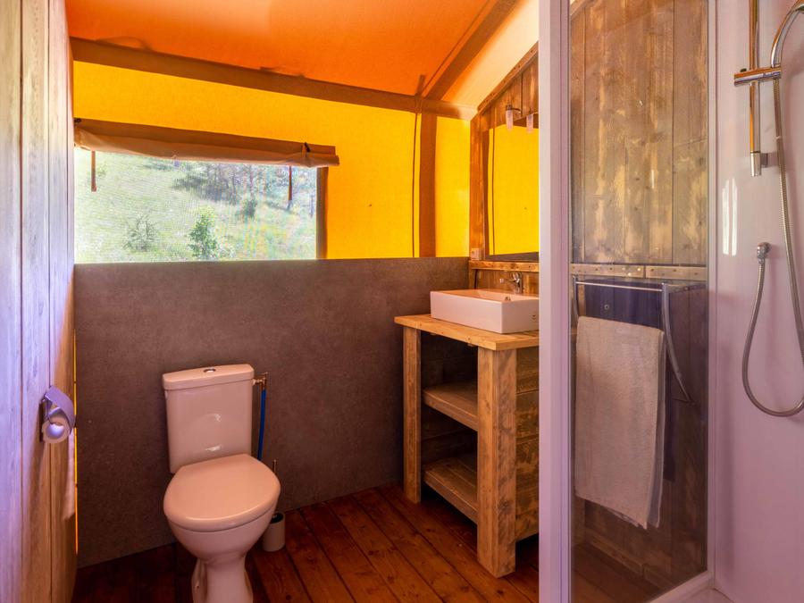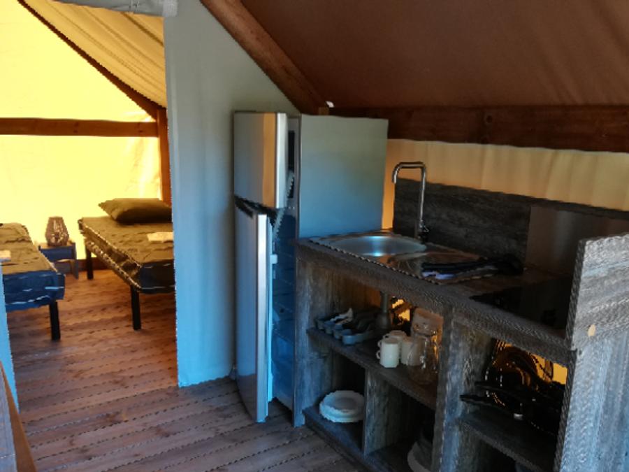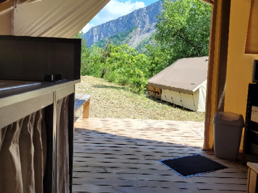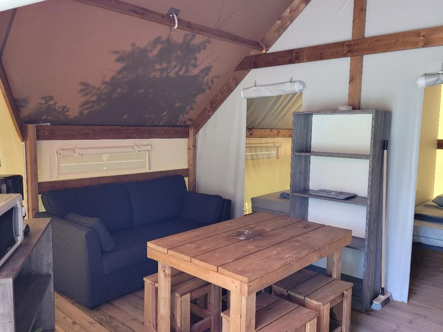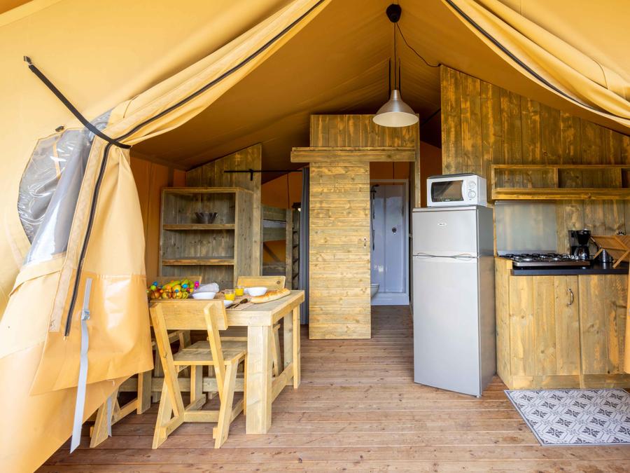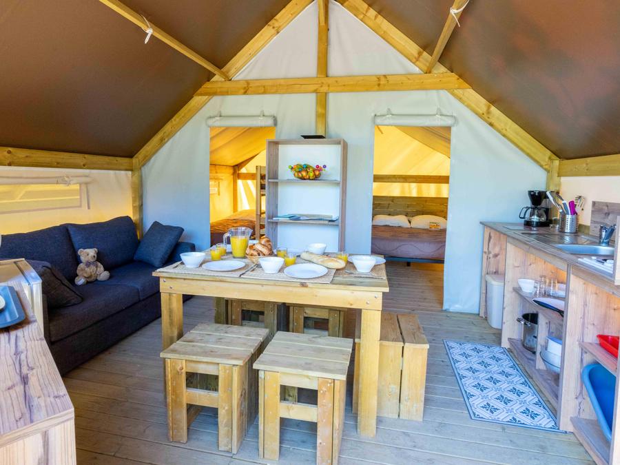 Tente 6 personnes - Tente Lodge Premium 35m² 3 chambres + terrasse 16m² (avec sanitaire)