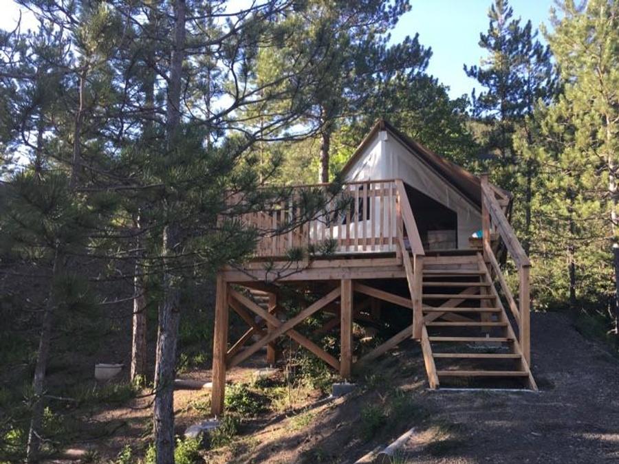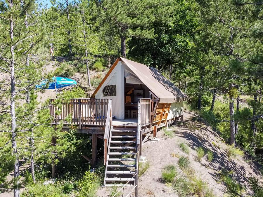 Tente 5 personnes - Tente Junior sur pilotis 21m² (sans sanitaire) 2 chambres + terrasse