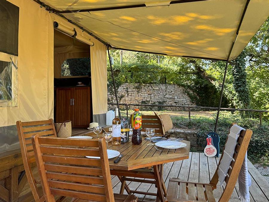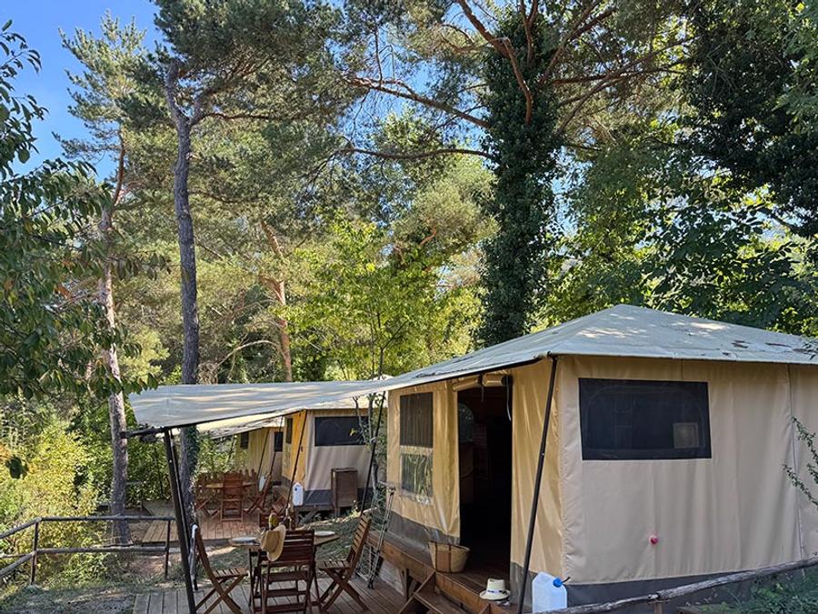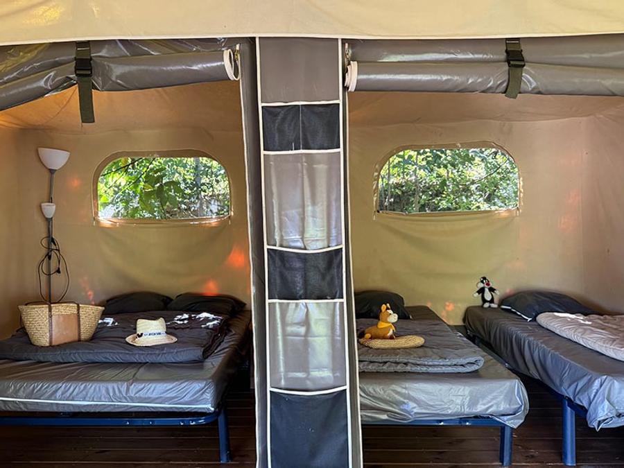 Tente en toile et en bois 4 personnes - Tente Marquise 2 chambres