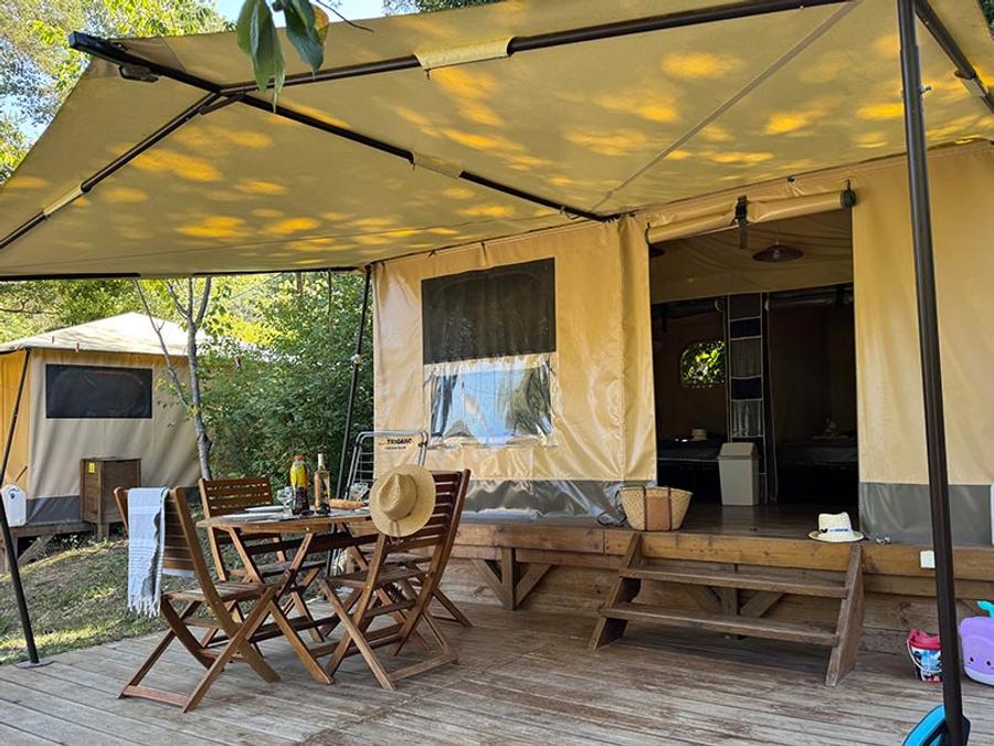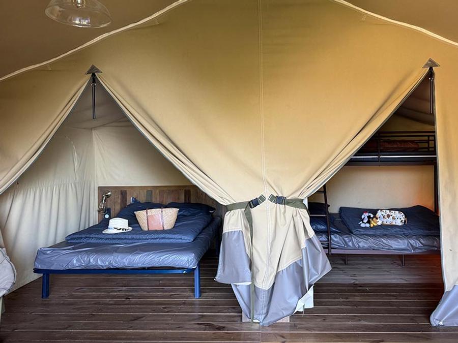 Tente en toile et en bois 5 personnes - Tente Lodge Kenya sur pilotis 2 chambres