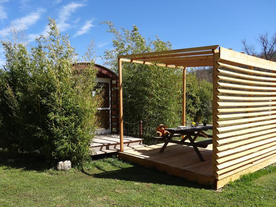 Hébergement 3 personnes - Roulotte 21m² 1 chambre + terrasse semi-couverte