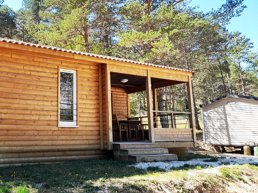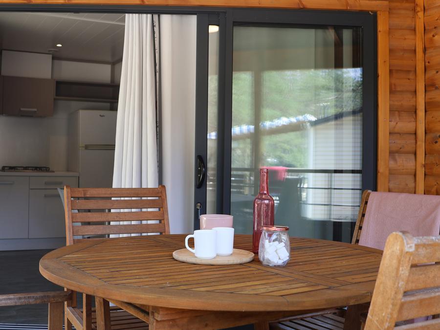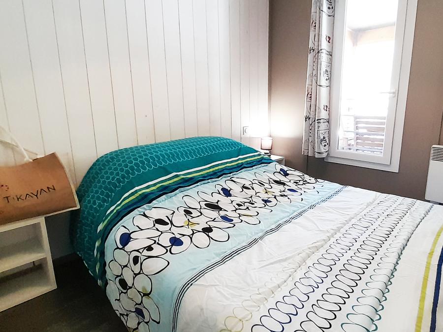 Une chambre avec 1 grand lit (140cm x 190cm), salle d’eau avec WC, couettes et oreillers, cuisine équipée, réfrigérateur table top, micro-ondes, cafetière à capsules (Dolce Gusto), coin repas, vaisselle, chauffage, terrasse, salon de jardin.