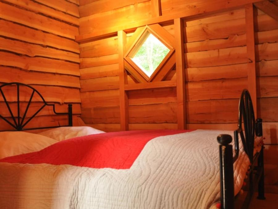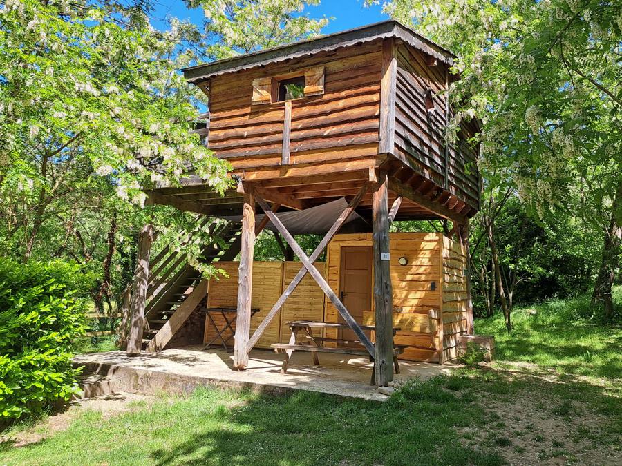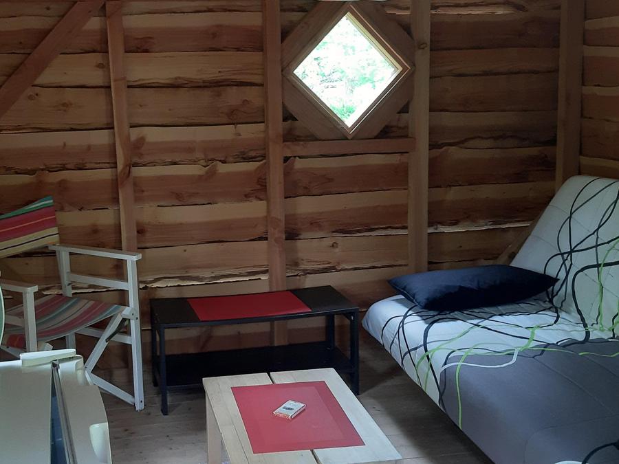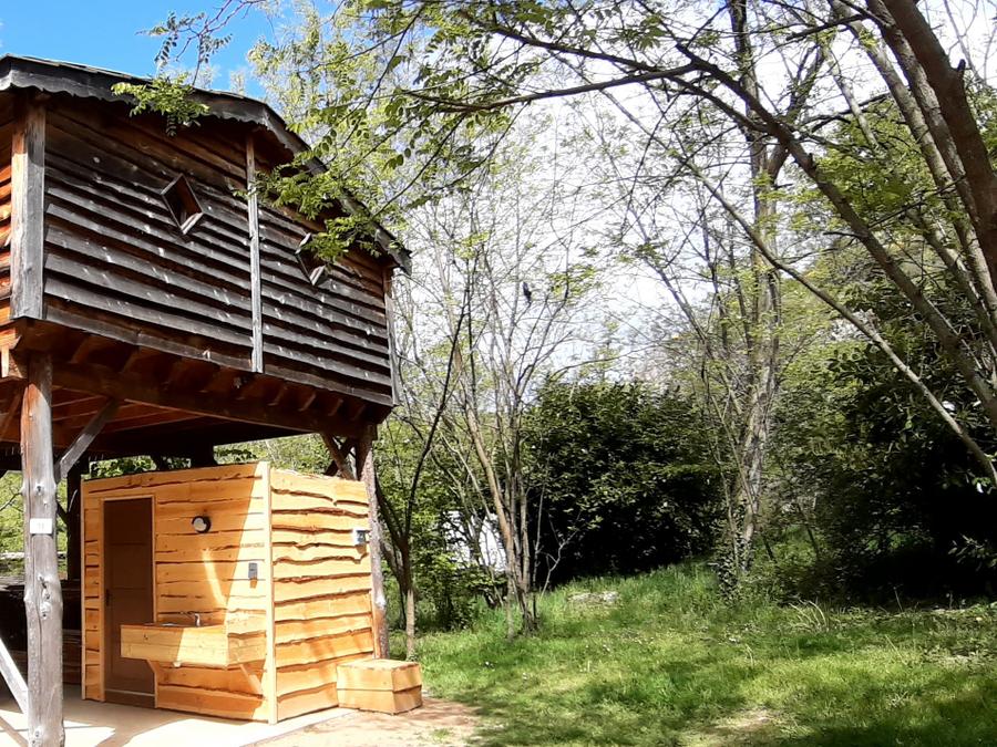 Cette charmante cabane en bois au milieu des grands arbres demeure l’apanage de jeunes et de couples, désireux de vivre l’esprit forêt.