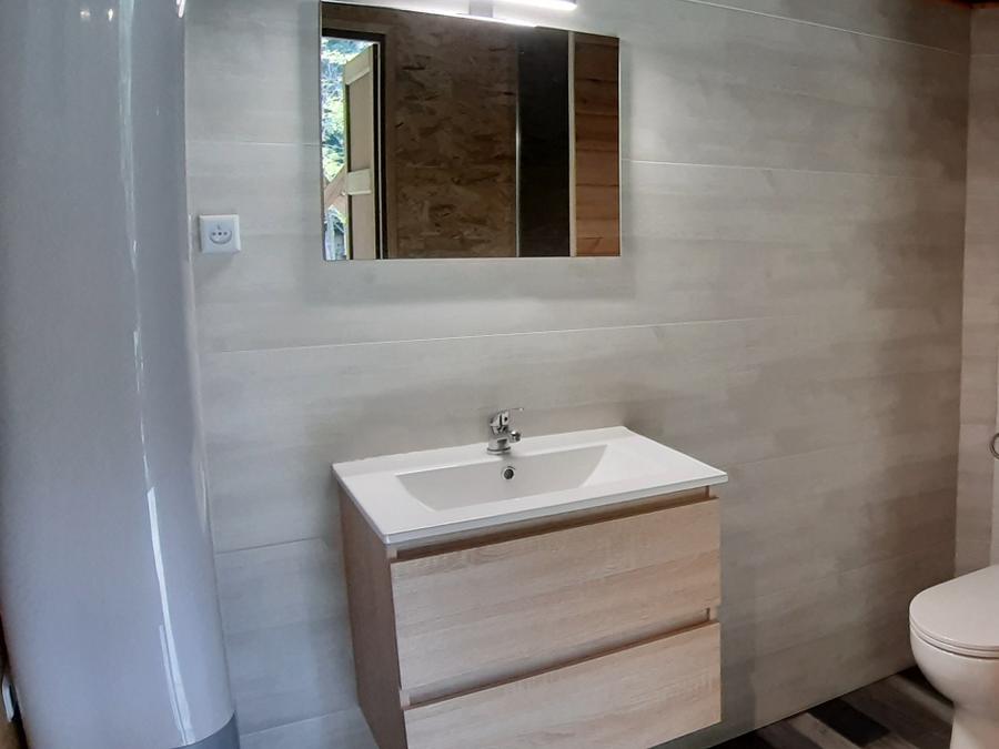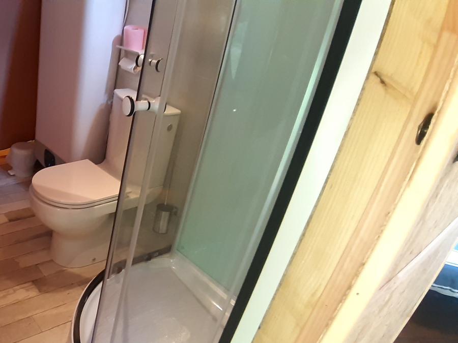 - Cabine de douche, toilettes et lavabo, moderne et neuve
