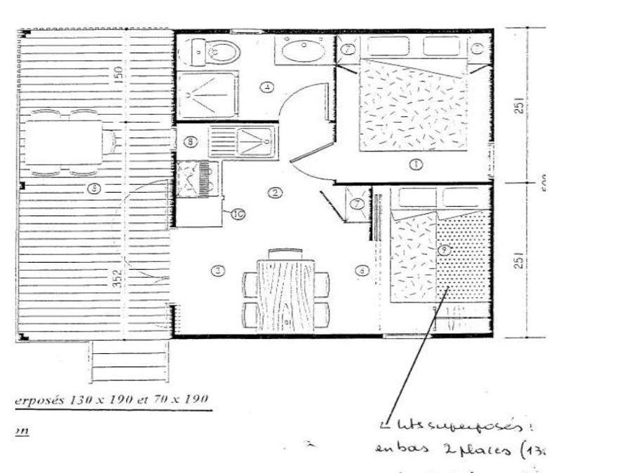- 1 chambre: 1 lit superposé pour 3 personnes 190x130cm