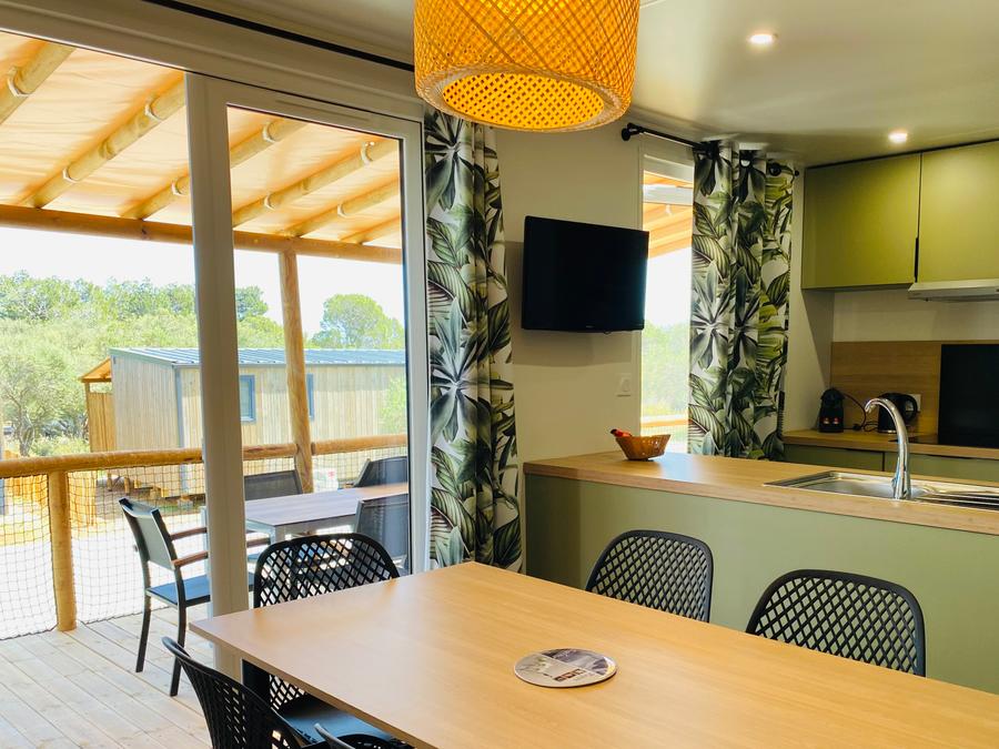 Mobilhome 6 personnes - Top Espace premium 32m², 3 chambres, terrasse couverte 15m² + TV + Lave vaisselle + climatisation