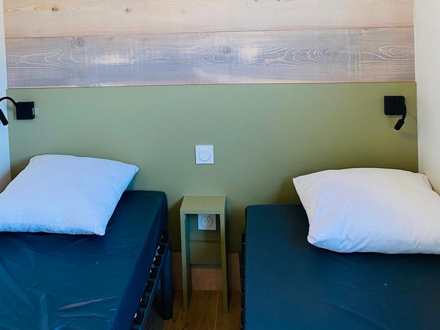 - Couvertures fournis, pensez à emmener vos draps car les draps et taies d'oreillers ne sont pas fournis (draps disponibles à la location, tarifs + réservation avec le camping)