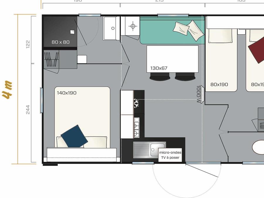 Mobilhome 4 personnes - Bambi 16m², 2 chambres (sans sanitaires)