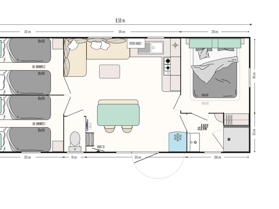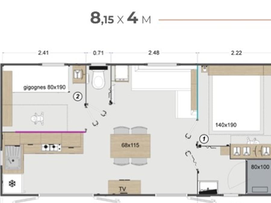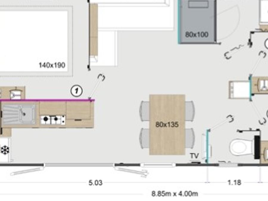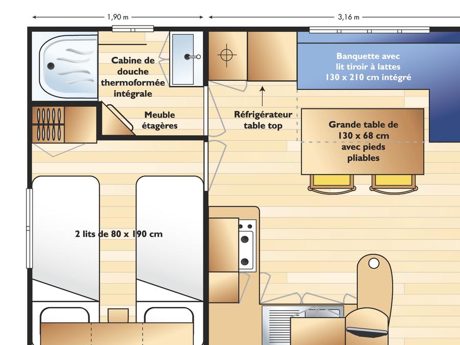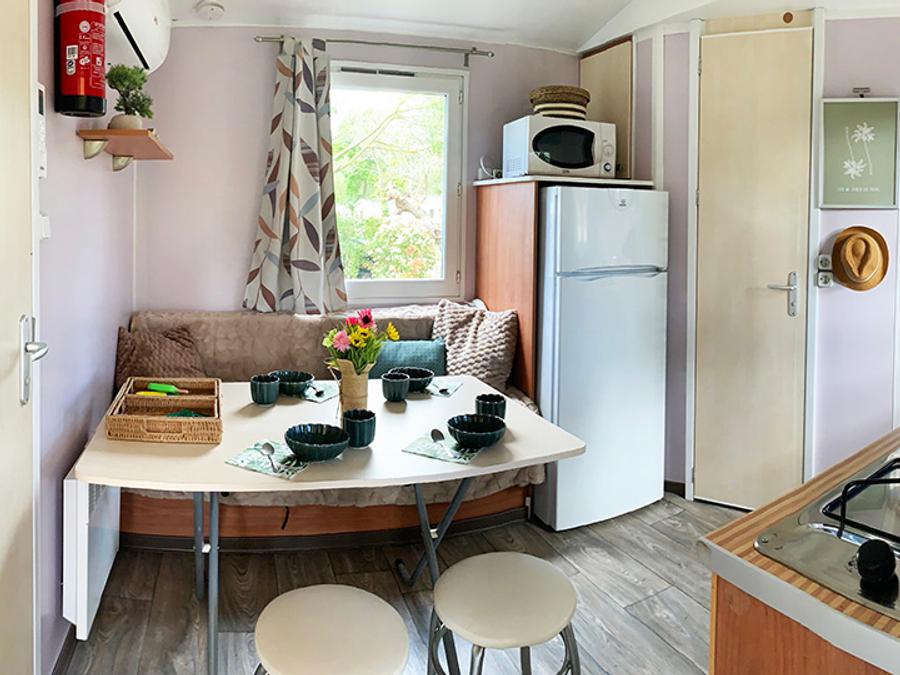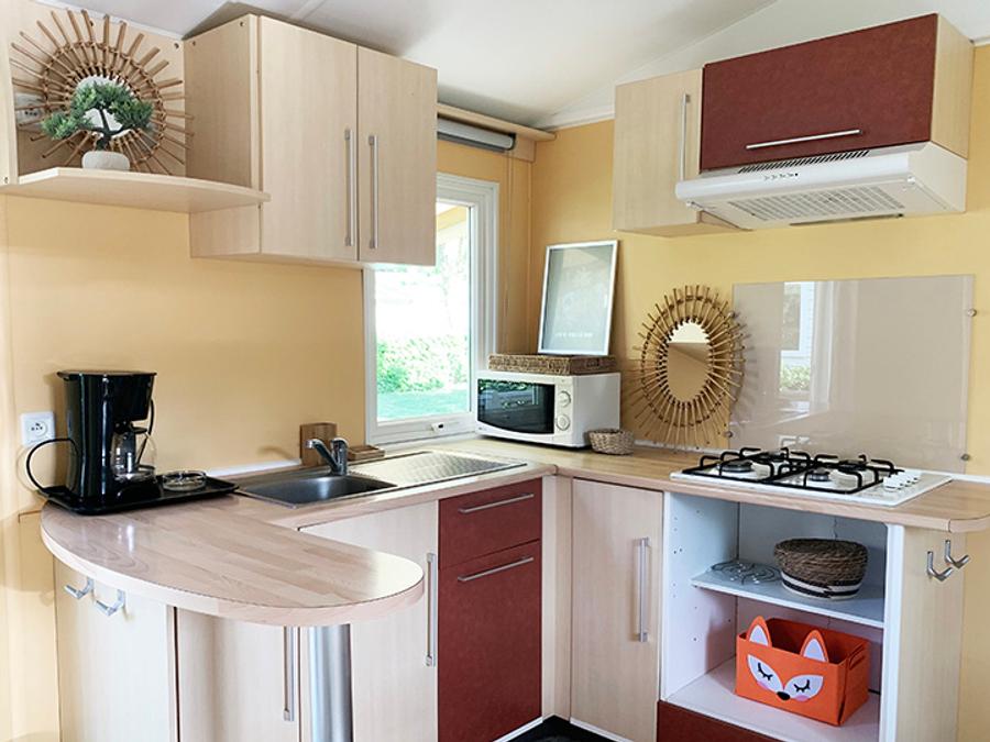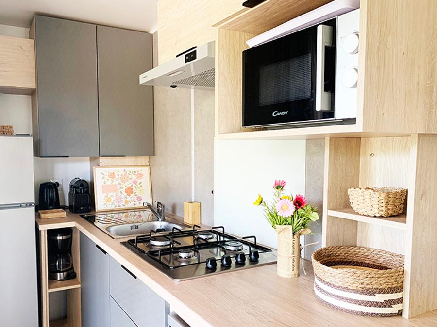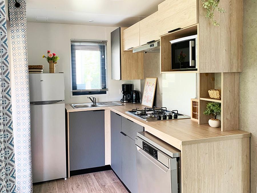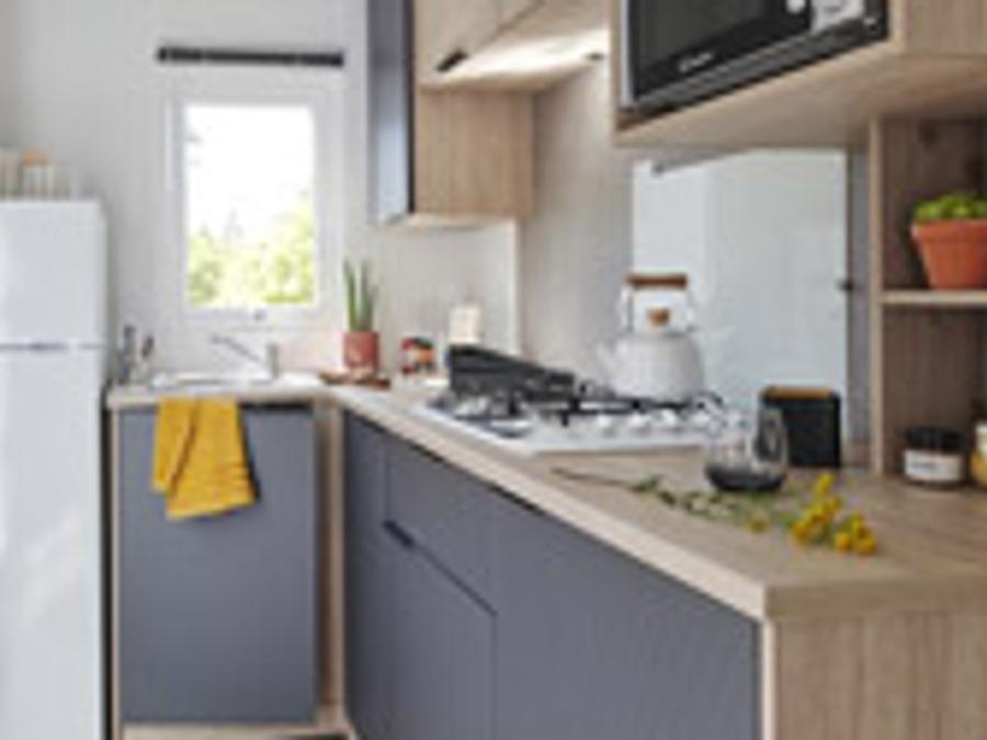 - Profitez d'une cuisine PREMIUM ouverte sur votre grande terrasse couverte, nos mobil-homes PREMIUM sont équipés d'un grille pain, d'une cafetière en complément des informations ci-dessus.
