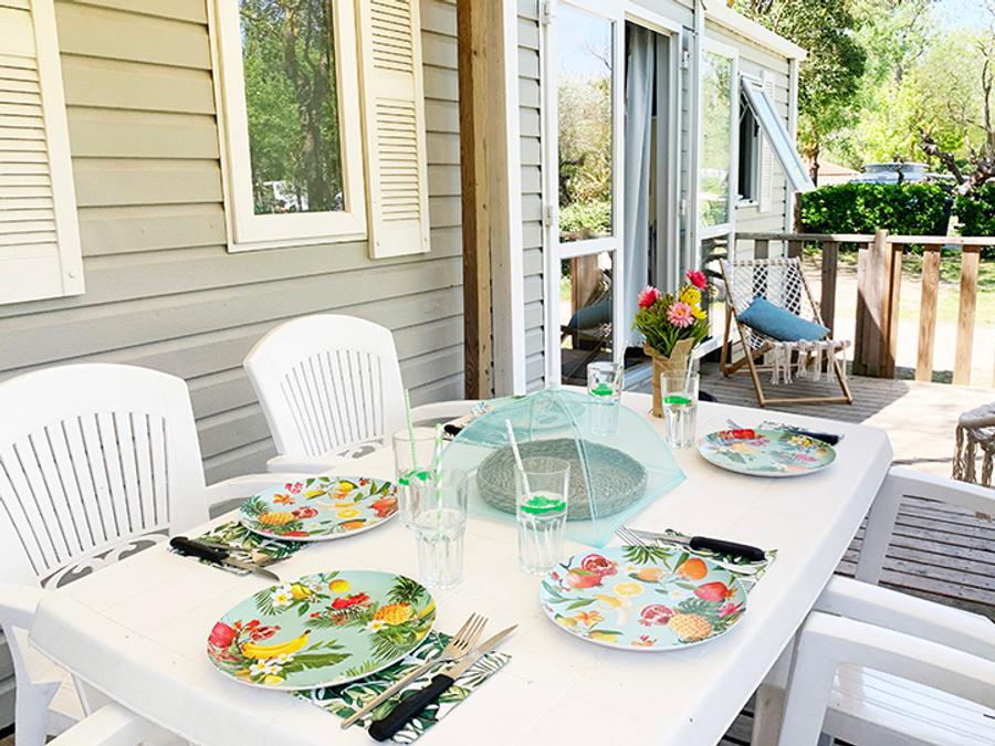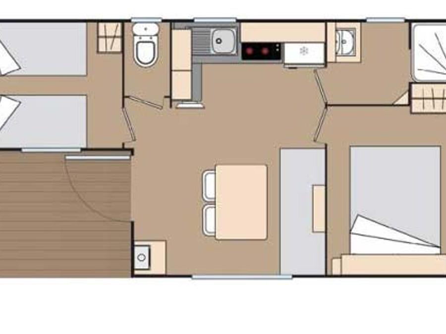 Mobilhome 6 personnes - PREMIUM 32m² - 3 chambres - TV - lave-vaisselle - climatisation - terrasse