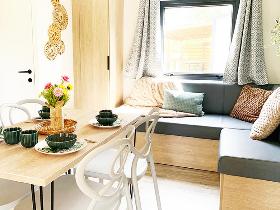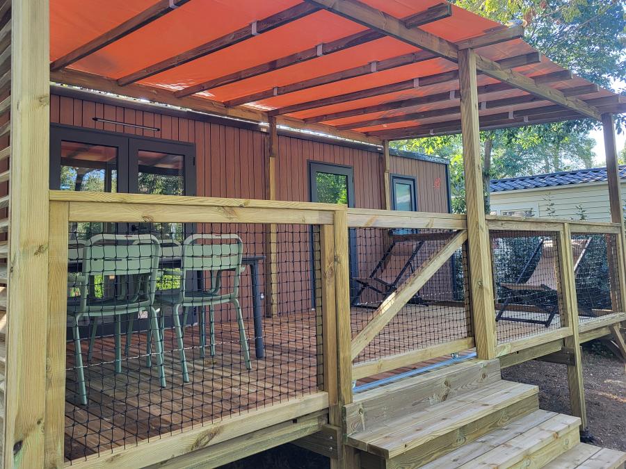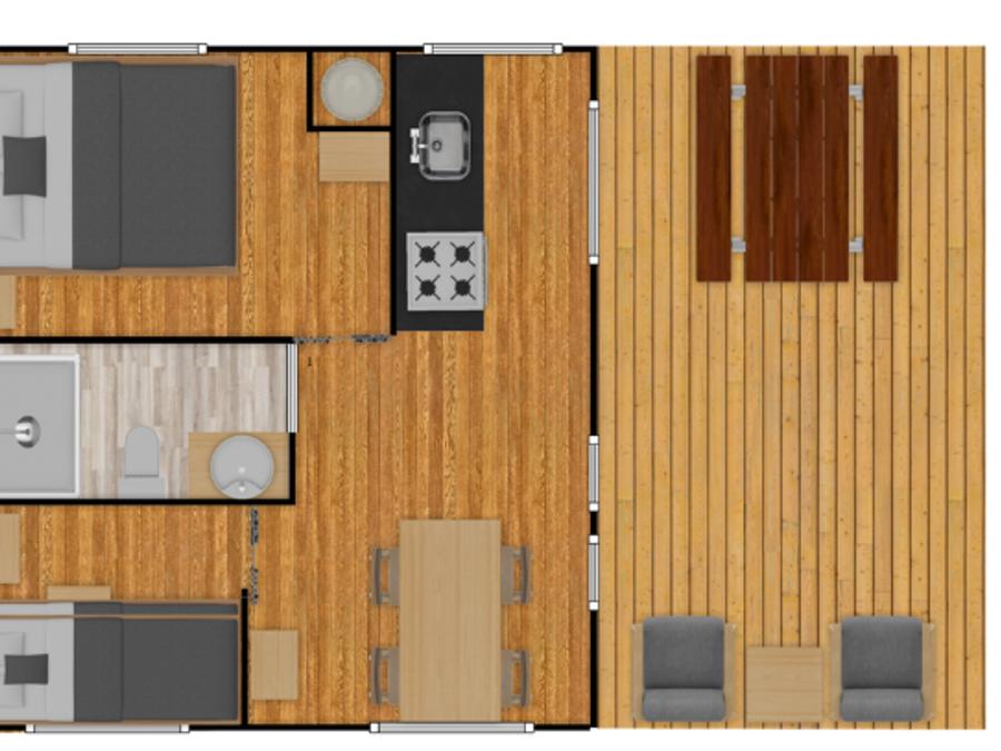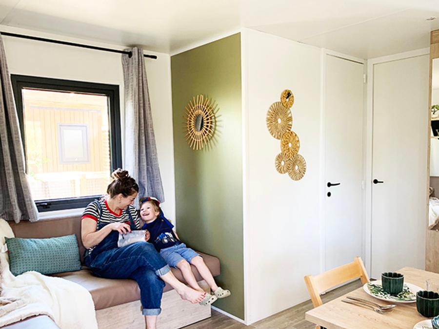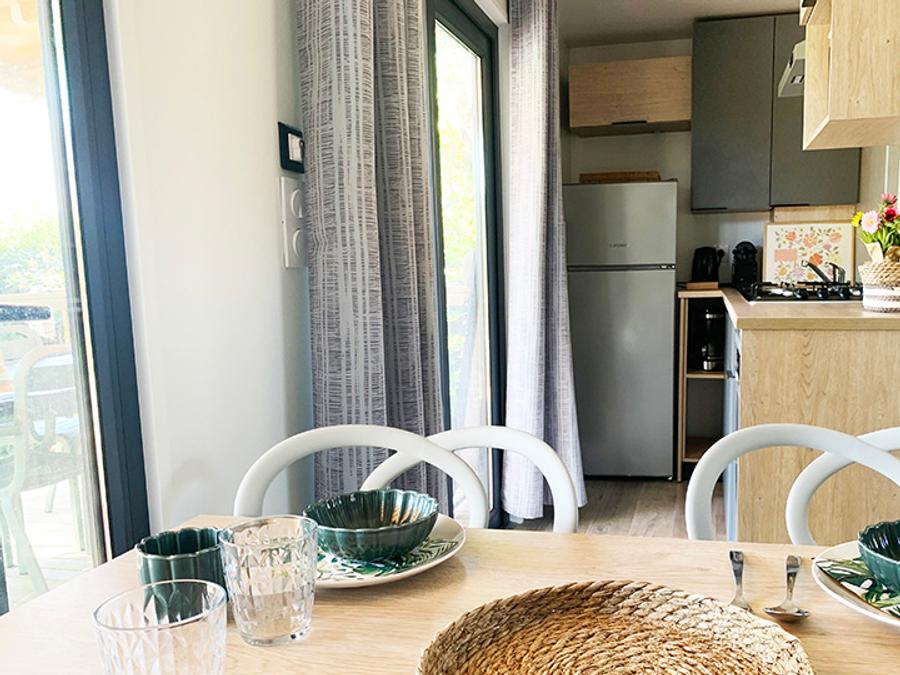 Mobilhome 4 personnes - PREMIUM 30m² - 2 chambres - TV - lave-vaisselle - climatisation - terrasse