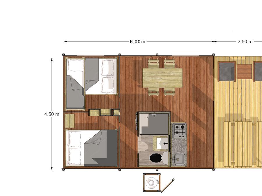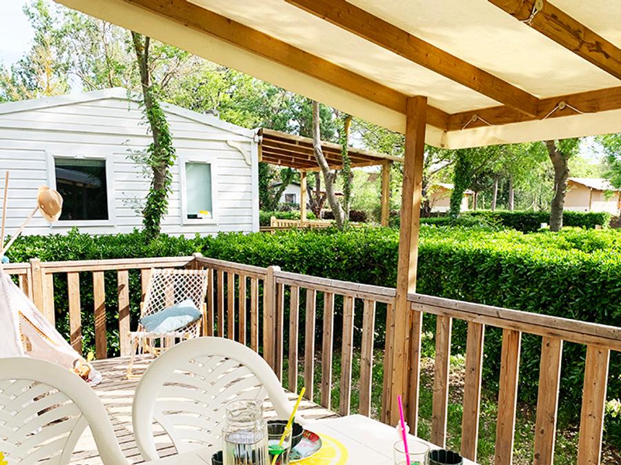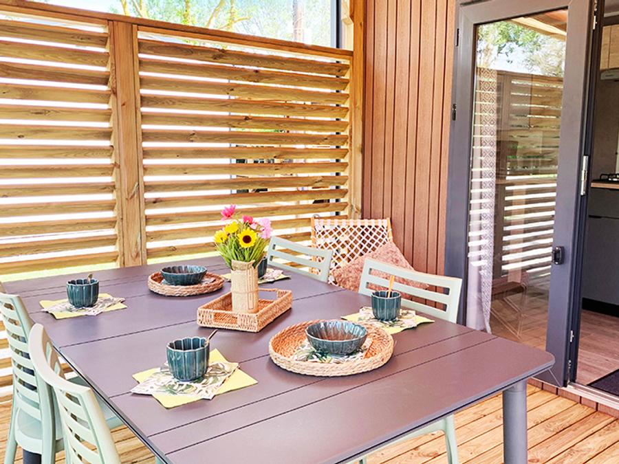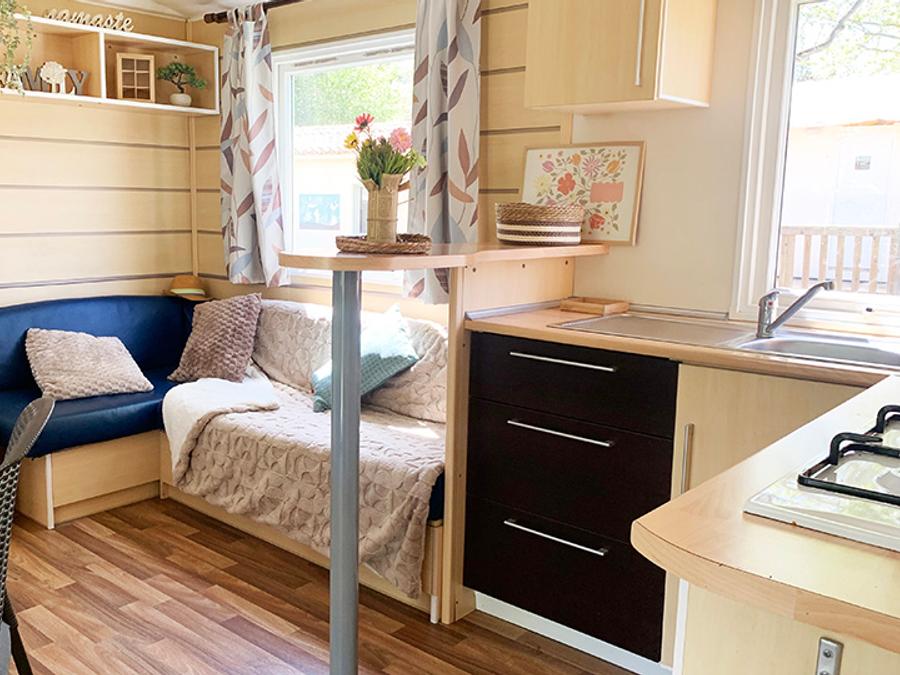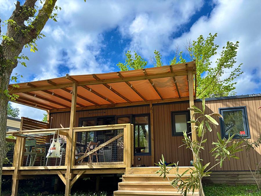 Mobilhome 4 personnes - PREMIUM 30m² - 2 chambres - TV - lave-vaisselle - climatisation - terrasse