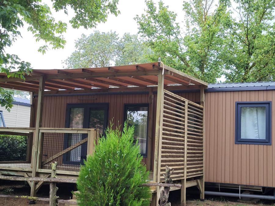 Lodge 6 personnes - Glamping Lodge PREMIUM RIVER 38m² - 3 chambres - TV - clim - terrasse couverte - vue rivière