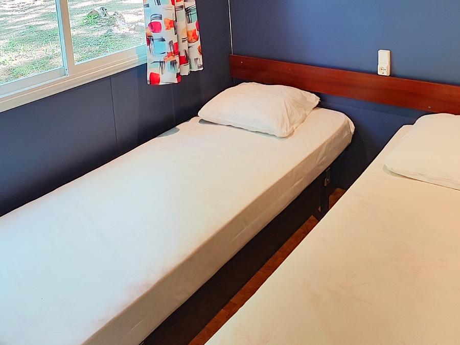 Pensé pour les grandes familles, il peut accueillir jusqu’à 6 personnes grâce à ses 2 chambres, dont une avec lits superposés, idéale pour les enfants. Son séjour lumineux et sa terrasse ombragée offrent un bel espace pour partager des repas ou simplement profiter du calme de la forêt.