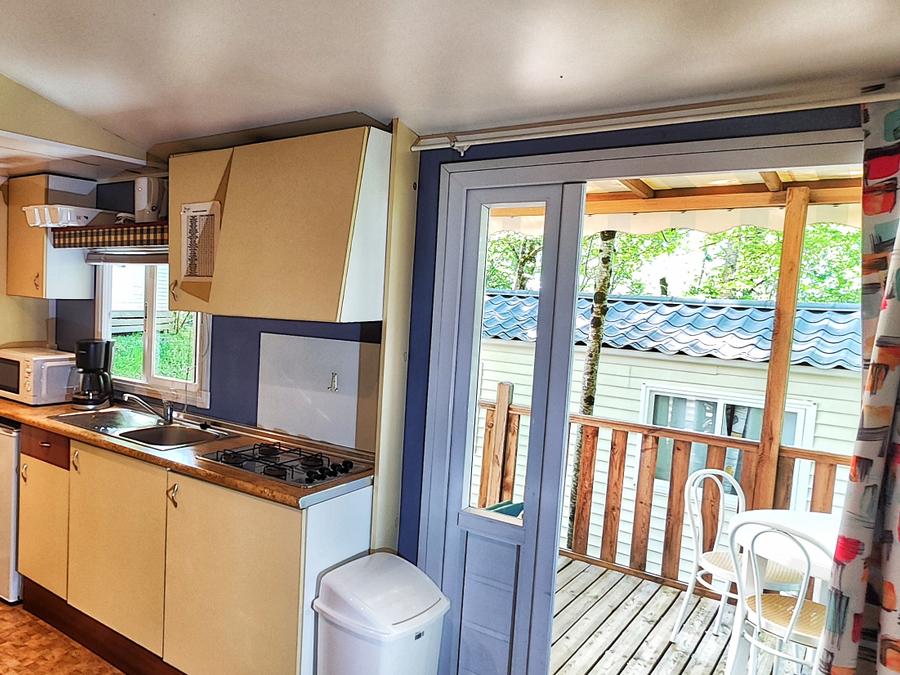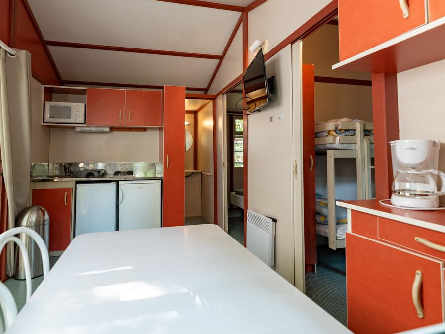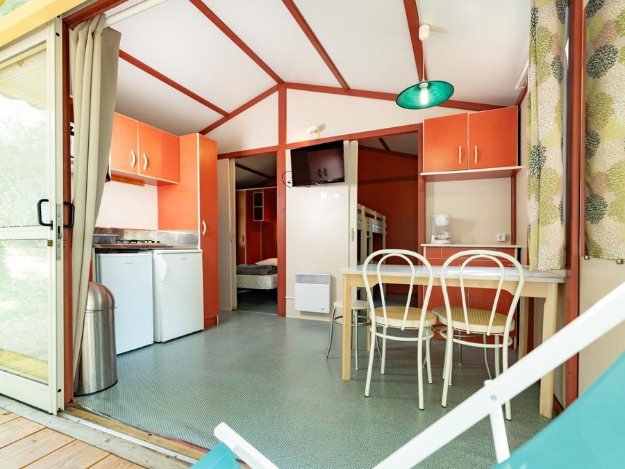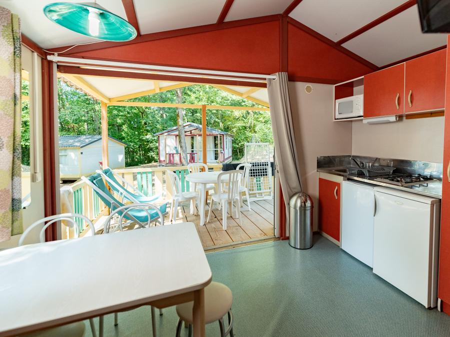 Le Mobile-home Sun (24 m² + terrasse couverte de 8 m²) allie praticité et bien-être pour un séjour en toute sérénité.