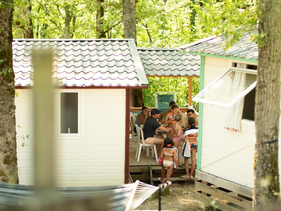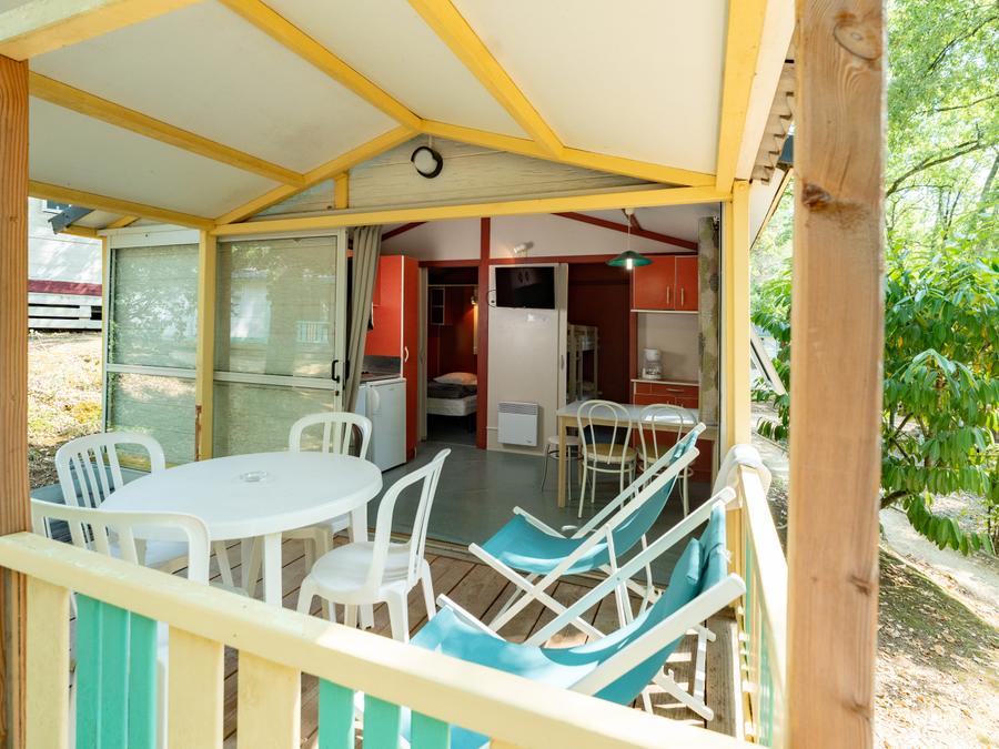 Prévu pour 4 personnes, il dispose de 2 chambres, d’une pièce à vivre lumineuse, d’une cuisine équipée et d’une terrasse abritée pour profiter du plein air, même à l’ombre des arbres.
