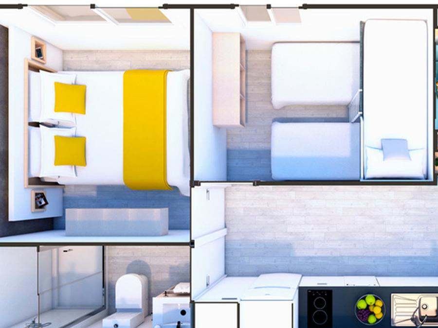 Surface, composition, chambre(s): la composition, les dimensions de l'hébergement et des couchages peuvent varier d'un logement à l'autre. Elles sont données à titre d'exemple et sont non contractuelles.
