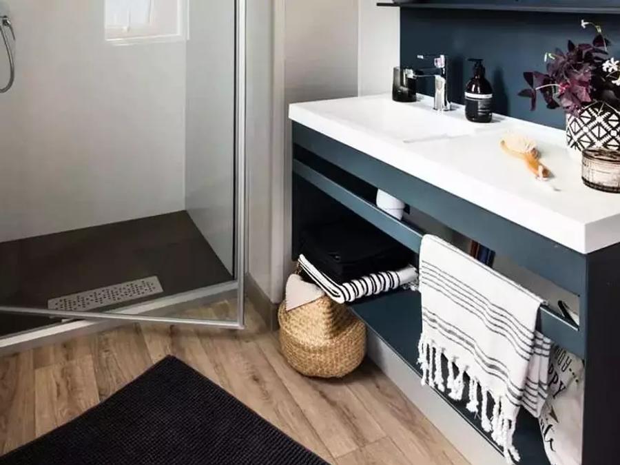 - Mobil home EN VAU 3 chambres (33m²) avec climatisation réversible, télévision et lave-vaisselles. Draps INCLUS. Le mobil home est équipé de trois chambres (matelas 160x200m pour le lit double et 80x190m pour les lits simples), coin cuisine, coin salon, 1 salle de bain, et wc séparé. Volets roulants dans les chambres. Un sèche cheveux est à votre disposition, dans la salle de bain.