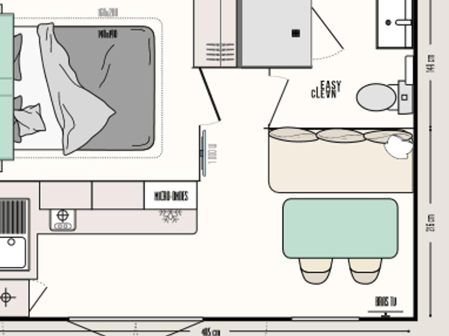 Surface, composition, chambre(s): la composition, les dimensions de l'hébergement et des couchages peuvent varier d'un logement à l'autre. Elles sont données à titre d'exemple et sont non contractuelles.