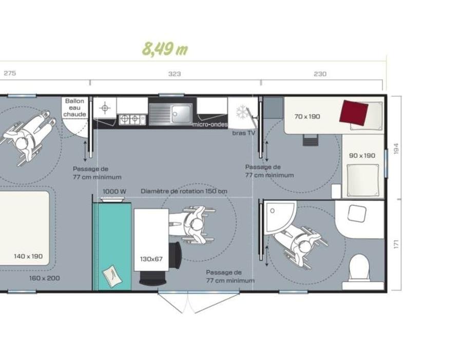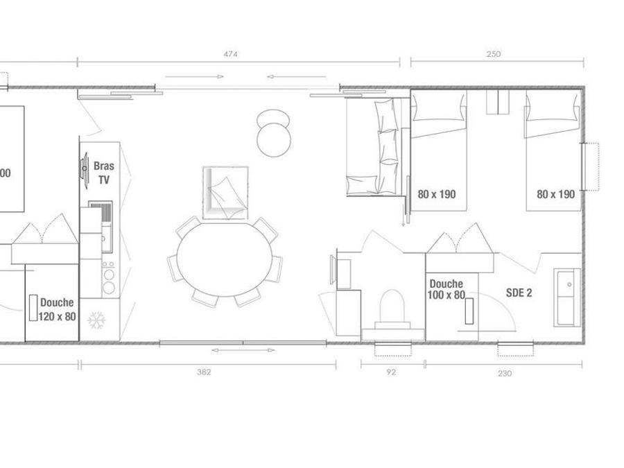 Surface, composition, chambre(s): la composition, les dimensions de l'hébergement et des couchages peuvent varier d'un logement à l'autre. Elles sont données à titre d'exemple et sont non contractuelles.