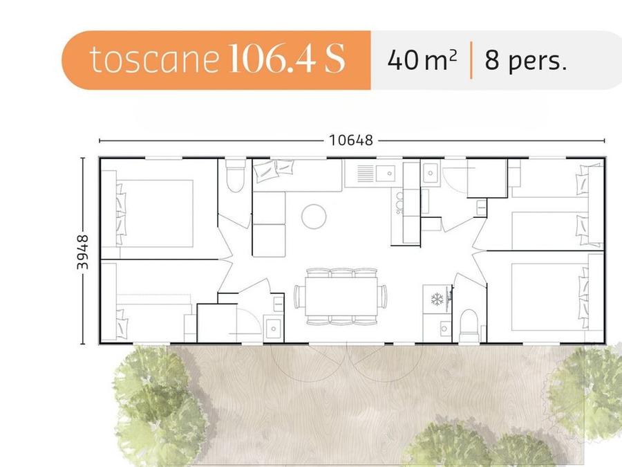 Mobilhome 8 personnes - Mobil-home premium 4 chambres 40m²