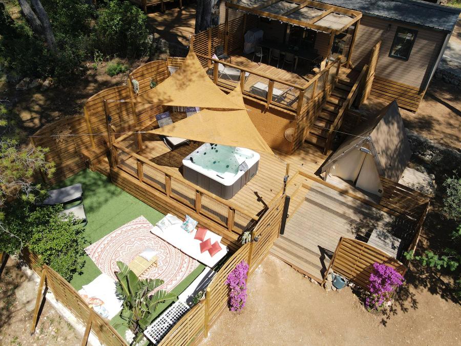 Mobilhome 10 personnes - NEW 2024 Cottage Côté Jardin Jacuzzi (6/8P) PRESTIGE 3CH. 2SDB + TIPI 2 couchages