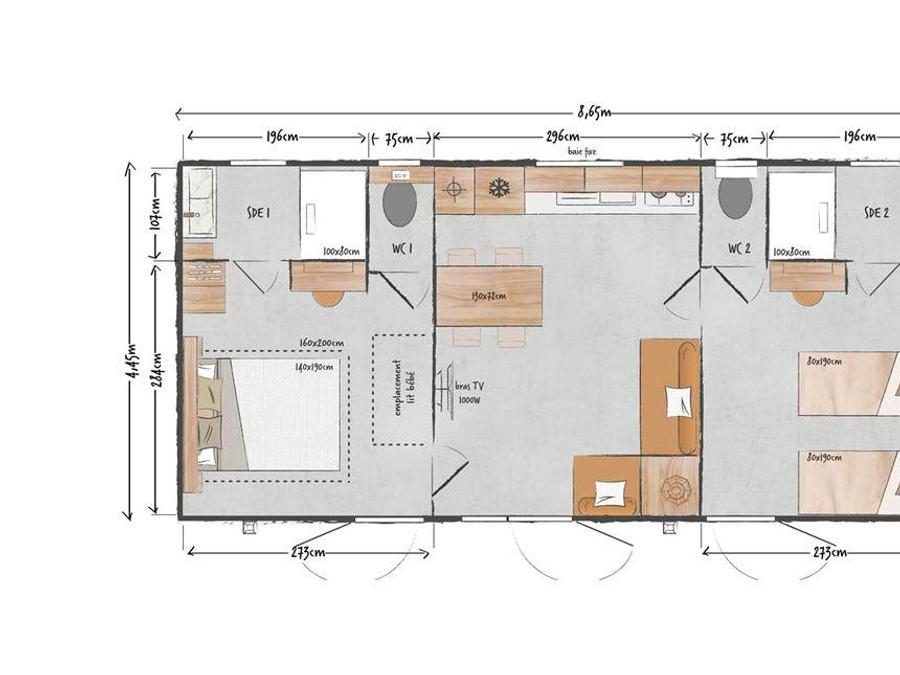 Mobilhome 8 personnes - Cottage FAMILY 63m² (3 chambres)