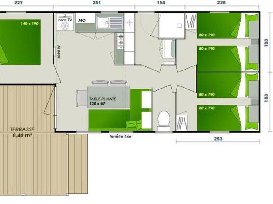 Mobilhome 6 personnes - Comfort | 3 Ch. | 6 Pers. | Terrasse surélevée | Clim. | TV
