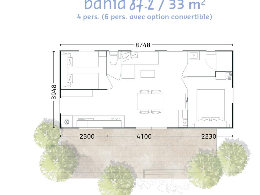 Mobilhome 4 personnes - BAHIA DUO 33 m² - PREMIUM - 2 Chambres