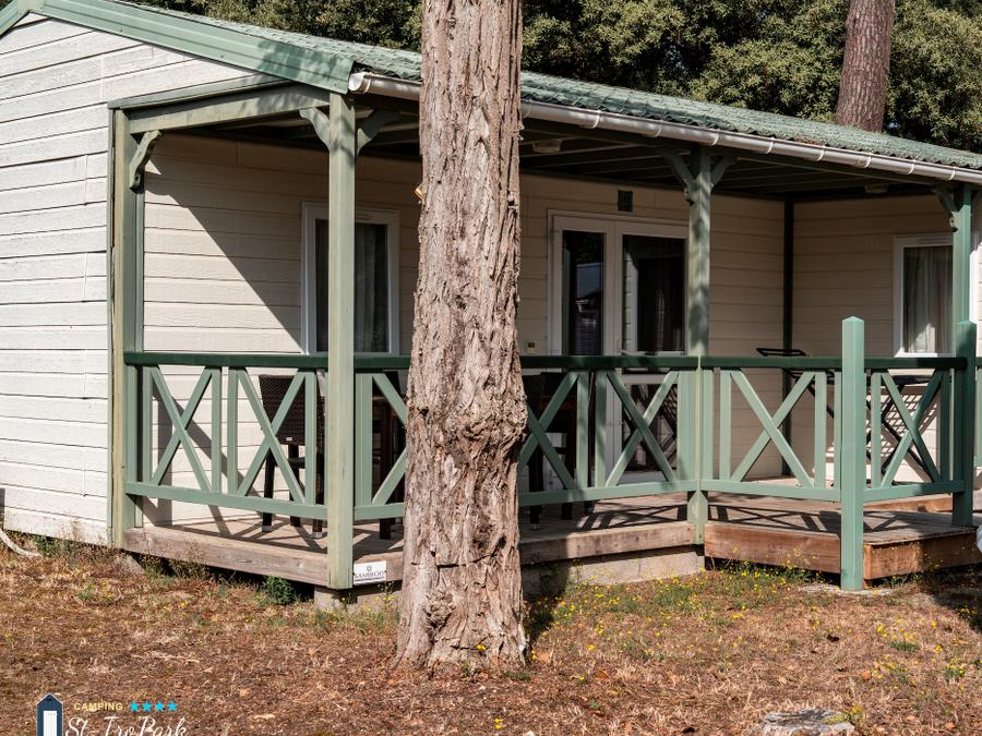 Chalet 4 personnes - Chalet Premium 35m² (2 chambres) + Climatisation + Lave-vaisselle + Terrasse couverte 12m²