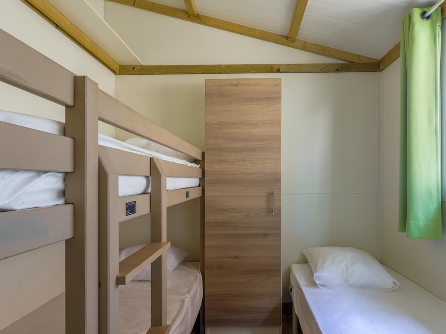 Les tailles de lits mentionnées sont données à titre indicatif. Il est possible d’avoir de légères différences de tailles selon les modèles de locatifs et leurs millésimes. La disposition des lits et la décoration peuvent également varier.