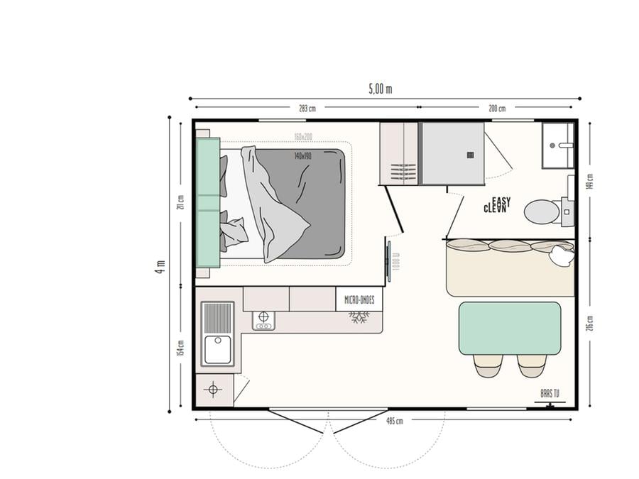 Mobilhome 2 personnes - CAHITA - 1 chambre - 5 mobil home (C01 à C05)