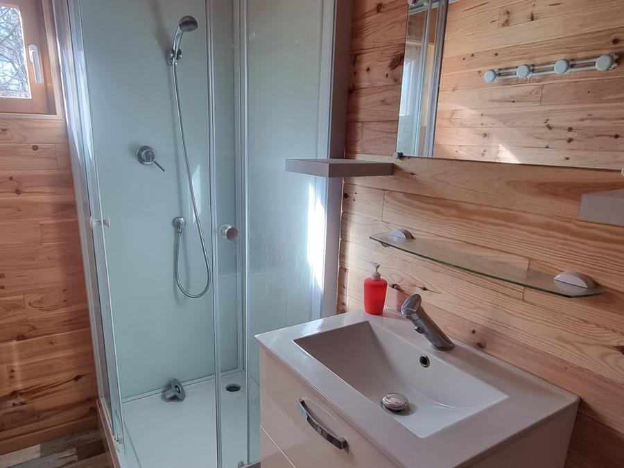 - Nouveauté construction en mars 2022 LA Cabane En tête à tête 35M2 2 Pers Suite parentale + Terrasse couverte (nouveauté 2022) est un hébergement insolite, et authentique qui sait allier confort et simplicité sur un emplacement privatif elle vous offre une nuit proche de la nature dans un espace cosy Vous pourrez cuisiner facilement avec tout le confort d’une maison bois Une cuisine équipée d'une table de cuisson 2 feux, un réfrigérateur, une micro-onde, une cafetière électrique, une bouilloire et un grille-pain – Un coin salon avec canapé non convertible table et chaises – et television Avec une chambre donnant acces à la salle de bain privée équipée d'une douche à l italienne 1 lit double La terrasse couverte est un espace de vie a part entière avec son salon de jardin et barbecue à gaz LA Cabane En tête à tête 35M2 2 Pers Suite parentale + Terrasse couverte
