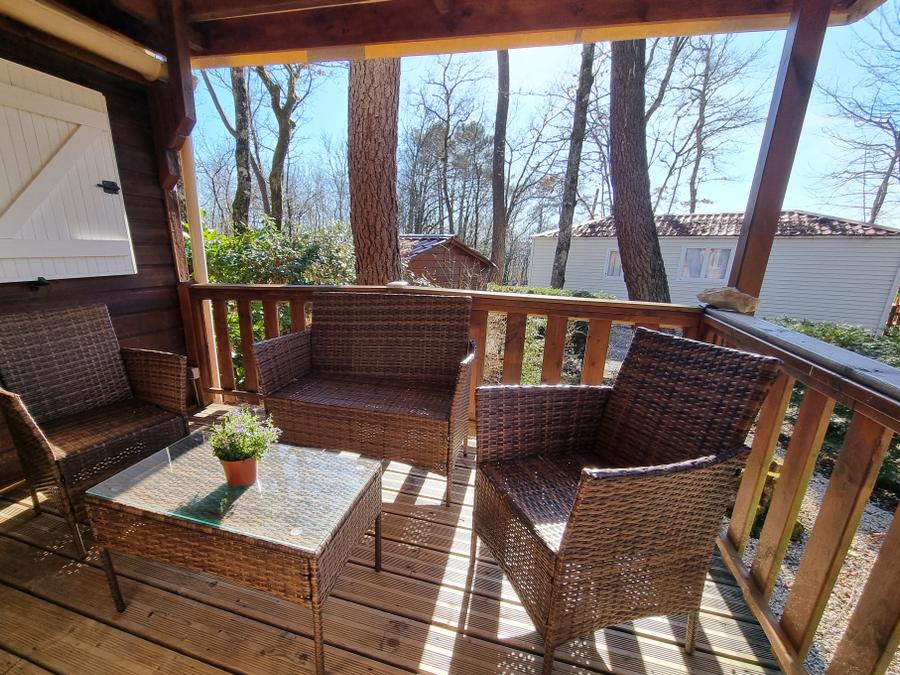 Chalet 5 personnes - 12 CHALET L'Amarylis 35m² + lave vaisselle +Terrasse COUVERTE +Télévision 1/5 pers