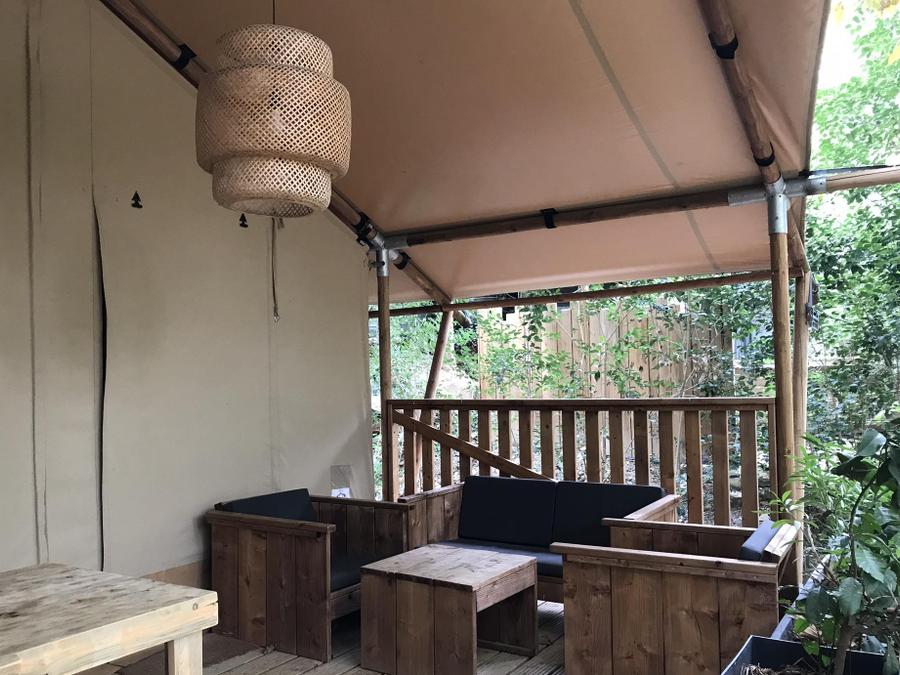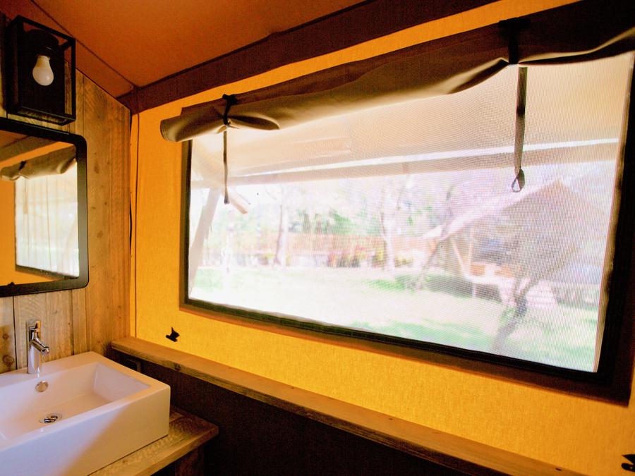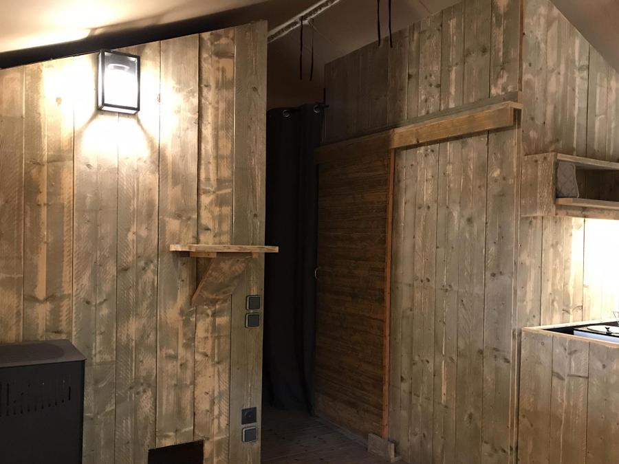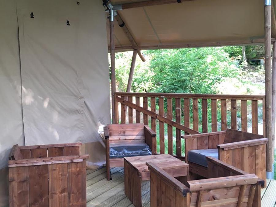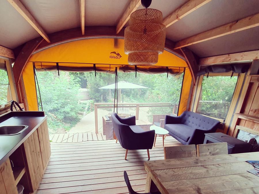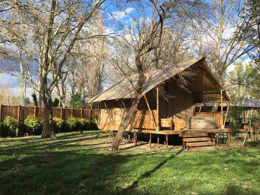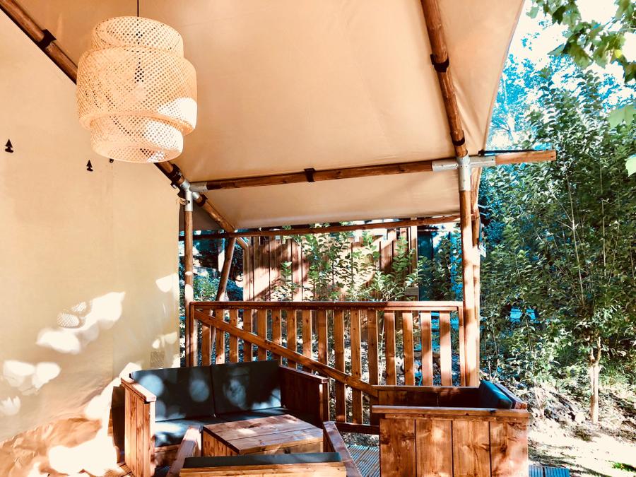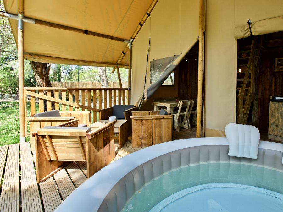 Lodge 6 personnes - Lodge Rivière 30m² + 15m² en mezzanine - 2 chambres - Spa privatif - cuisine - salle d'eau
