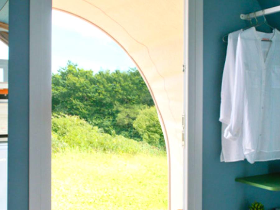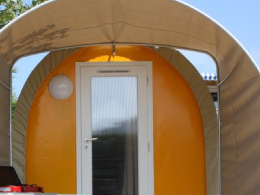 - L’Astria est un mobil-home pour deux, conçu pour offrir un lieu de séjour accueillant et confortable.