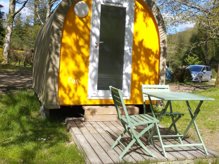Vous pourrez également profiter de la terrasse et de son mobilier de jardin idéal pour se reposer après une journée de randonnée ou à la piscine du camping.