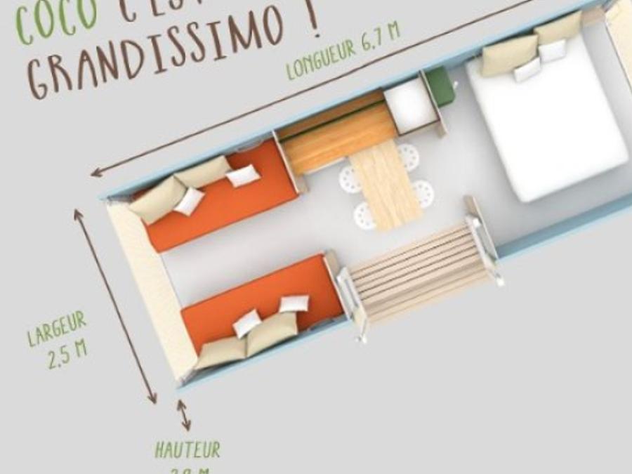 Bungalow toilé 4 personnes - Coco Sweet 17 m2 - 2 chambres avec terrasse couverte / sans sanitaire
