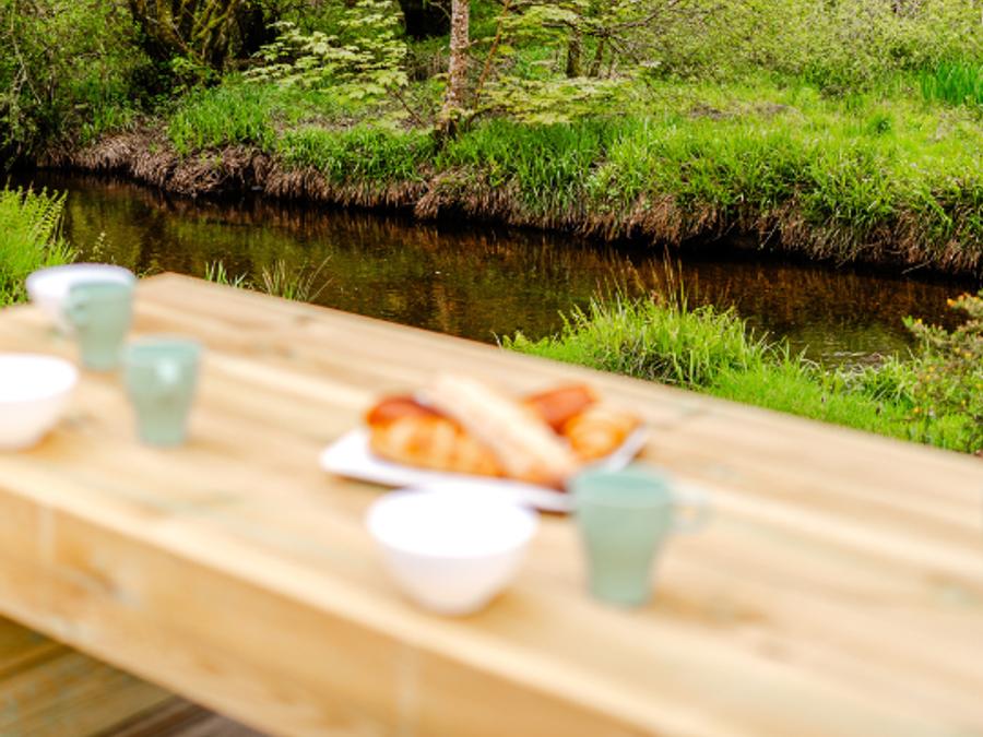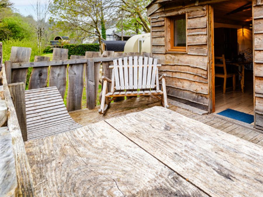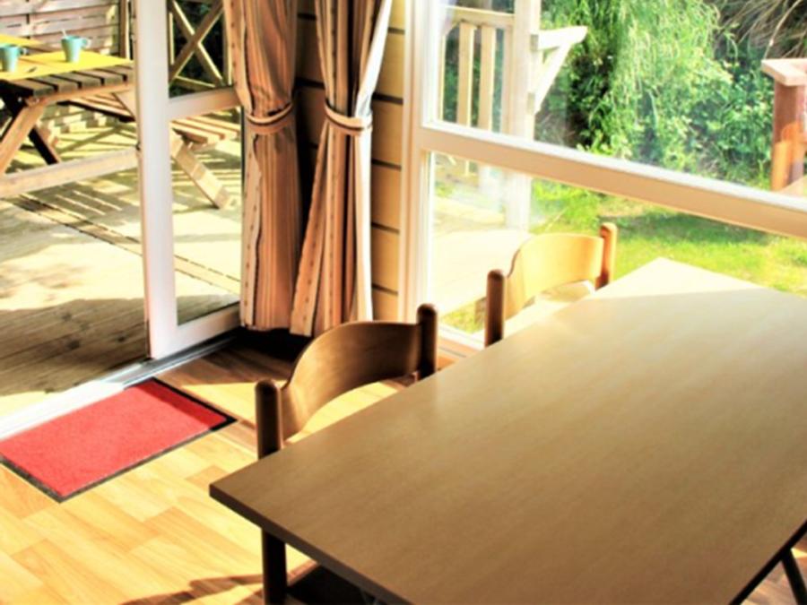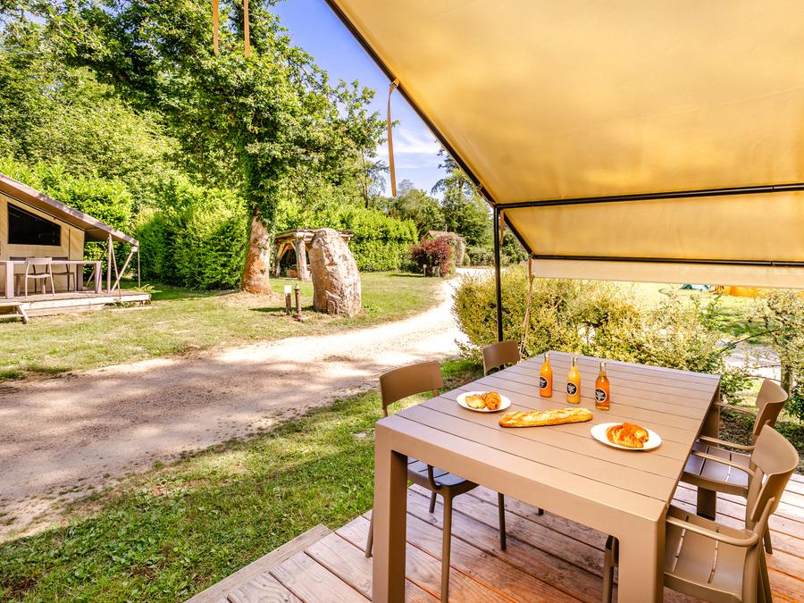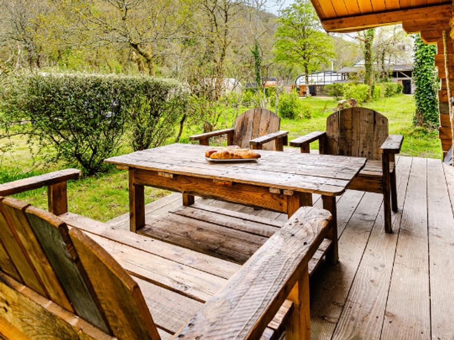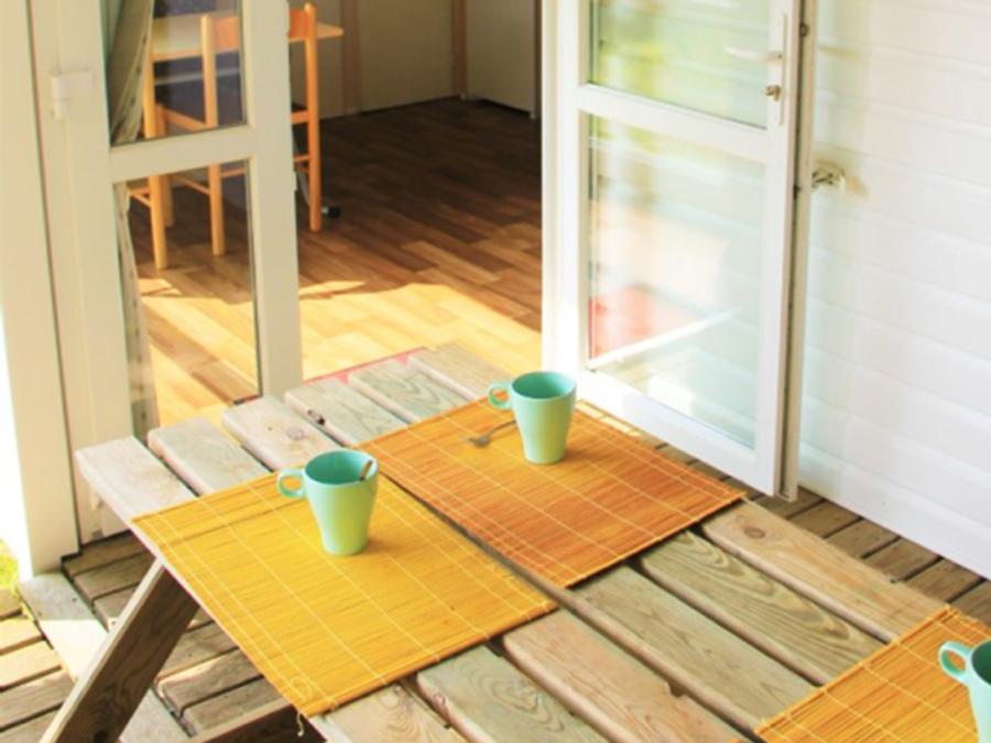 La grande terrasse avec mobilier de jardin est l’endroit idéal pour se détendre après une longue journée, et le cadre du camping magnifique vous donnera envie de ne jamais partir.