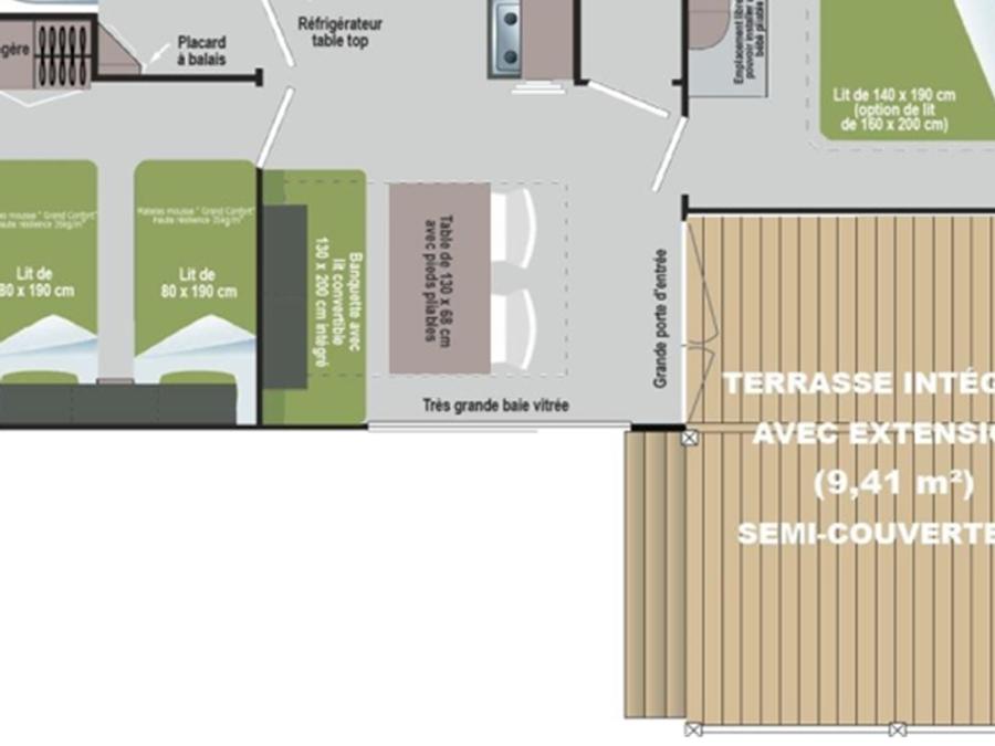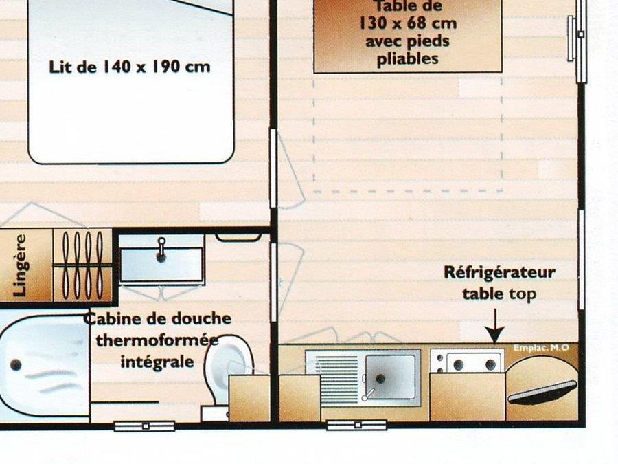 Surface, composition, chambre(s): la composition, les dimensions de l'hébergement et des couchages peuvent varier d'un logement à l'autre. Elles sont données à titre d'exemple et sont non contractuelles.