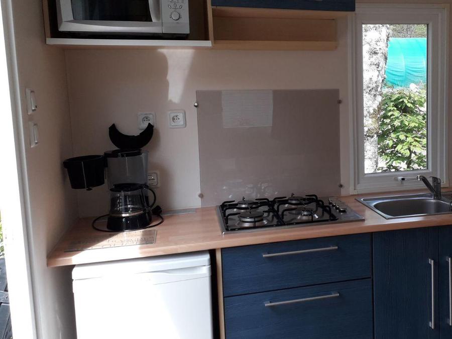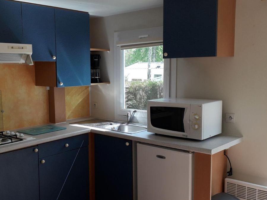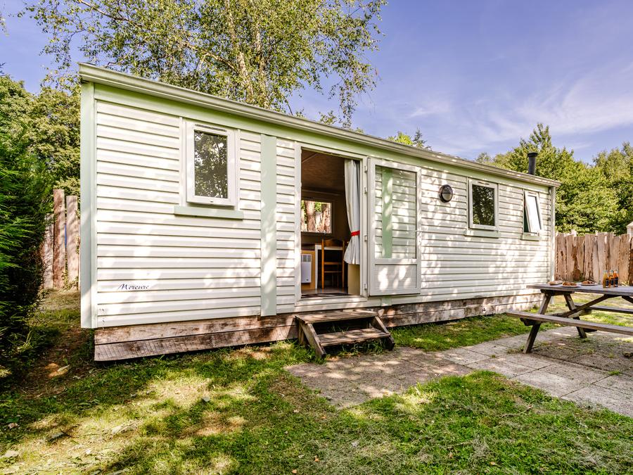 Ce mobile-home est parfait pour les séjours en famille ou entre amis, et sa terrasse et son mobilier de jardin vous feront passer de superbes vacances au cœur de la forêt.