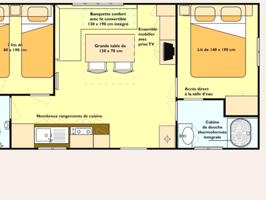 Spacieux et lumineux, ce mobil-home a été soigneusement conçu pour répondre à vos besoins.