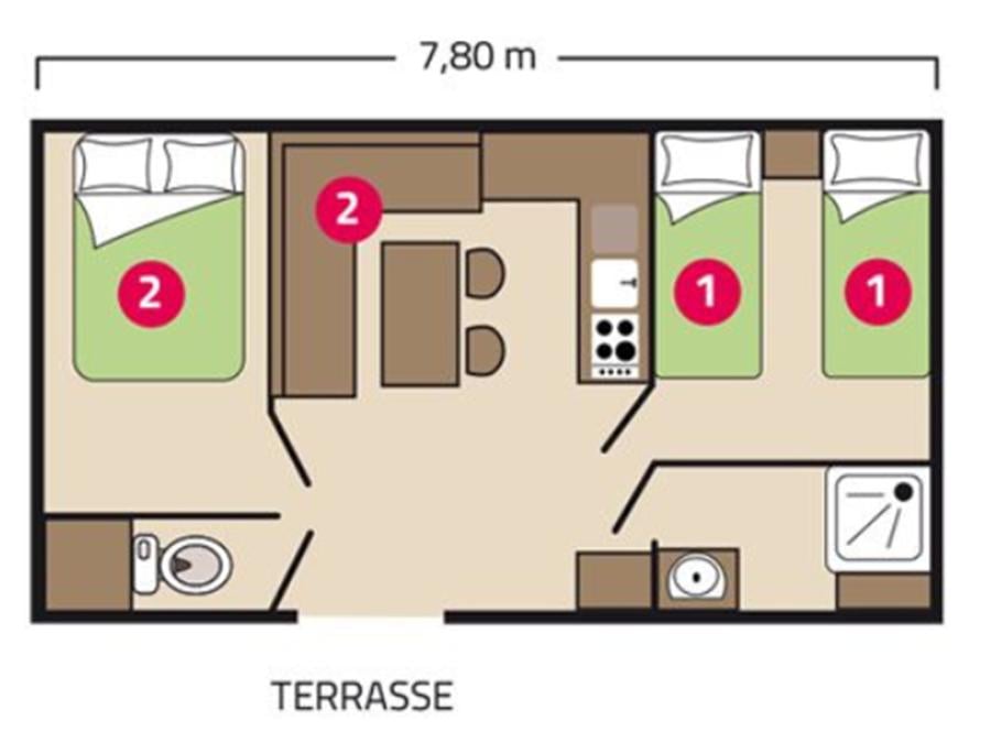 Mobilhome 4 personnes - DOMINOS 22m² / 2 chambres - sans terrasse