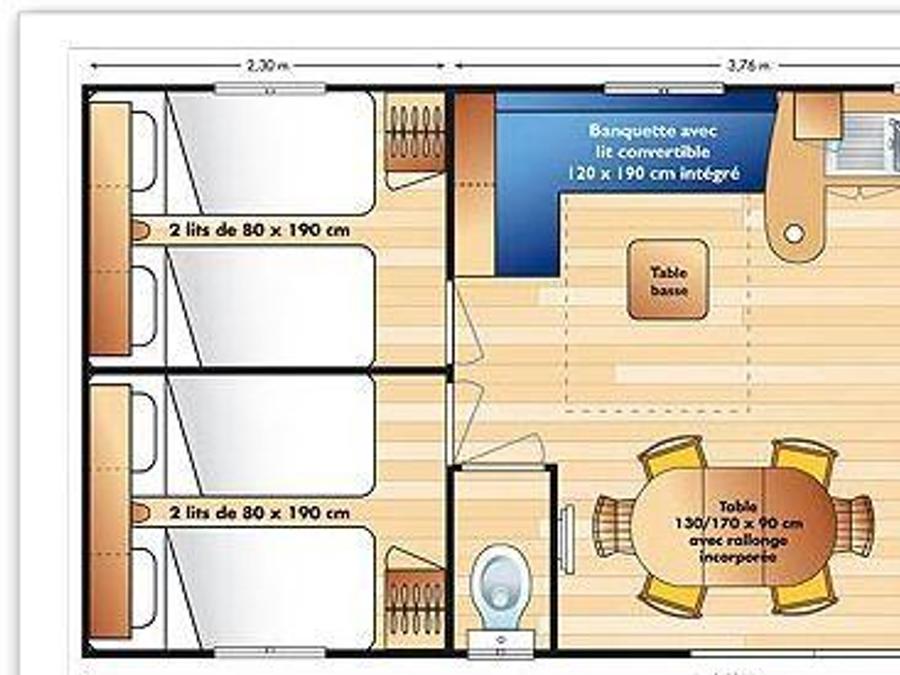 Ce mobile-home pouvant accueillir jusqu’à 6 personnes est votre solution de vacances idéale.