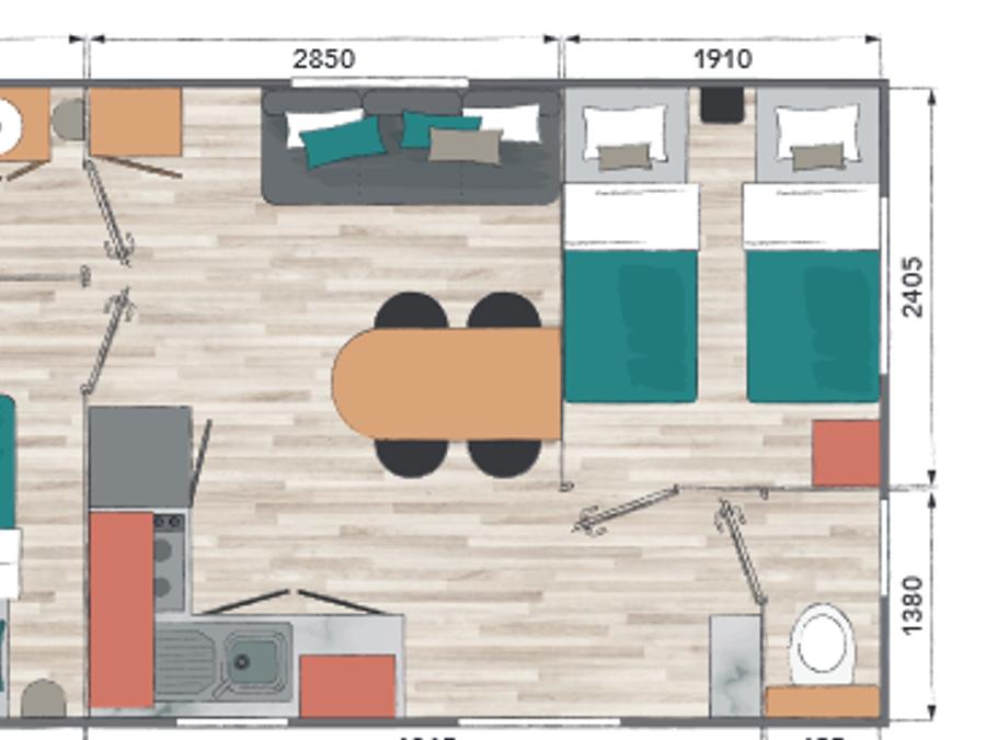 Mobilhome 4 personnes - Privilège 2ch - TV - 29m²